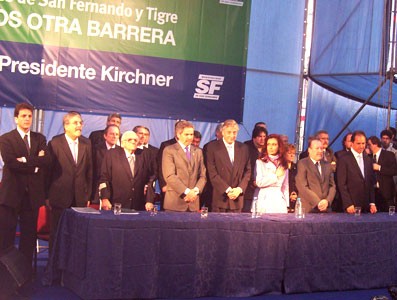 Como es habitual en sus presentaciones, luego de los discursos y las firmas tanto Kirchner como Cristina Fernández, caminaron un rato entre la gente que llevaron los organizadores de diferentes barrios de Tigre y San Fernando, para presenciar la inauguración.