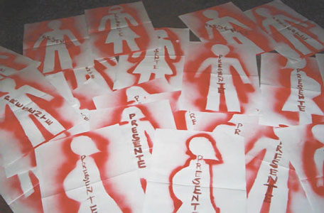 Ellos dibujaron las figuras y colocaron el nombre de familiares o conocidos víctimas del terrorismo de Estado.