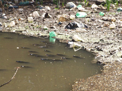 Otros peces quedaron curiosamente atrapados en mortales peceras formadas por basura acumulada sobre el río Luján, que ya produjo un endicamiento que en el último año pasó de tener 100 metros a más de 700 en donde se hallan botellas, bolsas, aerosoles, heladeras, árboles caídos y vegetación que crece sobre la basura, entre otros desperdicios que literalmente taponan el cauce de agua eliminando su corriente natural.