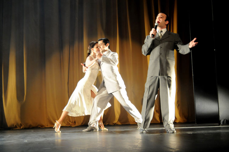 Los matices que ofrece la obra y el paso entre los actos esta marcada con las intervenciones de Esteban Riera, una de las voces de la nueva generación del tango, que interpreta de manera visceral y pasional No hay tierra como la mía y Balada para mi muerte, acompañado por un cuadro de baile en cada instancia.