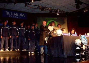 El presidente del club, Alberto Trípoli, siguió con atención la presentación y los sorteos de camisetas y balones con varios directivos como Gabriel Estoroni, Mauricio Sevilla y Enrique Borreli.