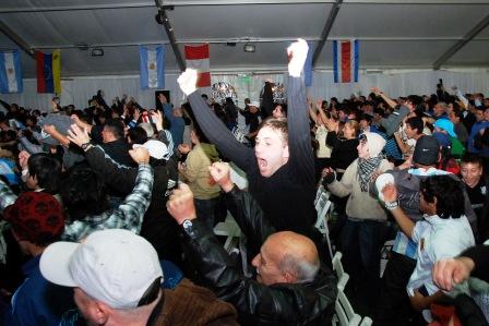 Romero explicó que la carpa de la Copa América permanece abierta al público desde las 14 horas, con entrada libre y gratuita, y que los partidos se comparten con amigos o en familia “con el mismo fervor como si estuvieran en la cancha”