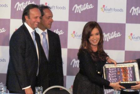 El presidente de Kraft Food Argentina, Juan Garibaldi, destacó que "después de 12 años, la empresa Milka vuelve hoy a producir chocolates en la Argentina", en el acto que encabezó la presidenta Fernández de Kirchner junto al presidente de Kraft Foods Latinoamérica, Gustavo Abelenda.