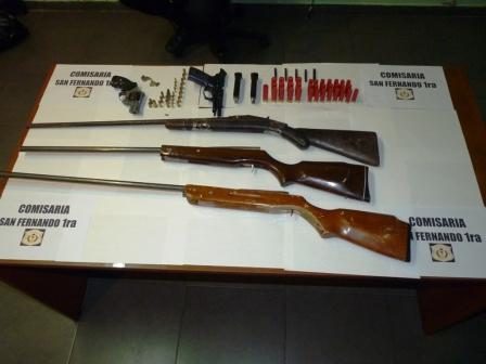 Algunos de los elementos secuestrados fueron cuatro escopetas, entre ellas calibres de 16, 12, 14, todas carentes de registro de numeración. Además, un revolver calibre 22 largo marca Tejano, una pistola 9 mm marca Bersa, con la numeración suprimida y tres cargadores.