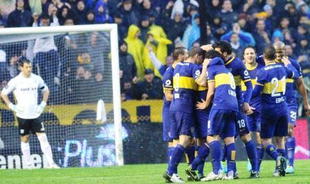 La presión de Boca en la zona de volantes no le permitió a Racing posibilidad de salida. Gago hizo circular la pelota con prolijidad y sobre la izquierda se construían fructíferas sociedades entre Juan Manuel Martínez, Sánchez Miño y Emanuel Insúa, después sustituido por Nahuel Zárate, con las que el equipo local encontró frecuentes chances de desequilibrio.