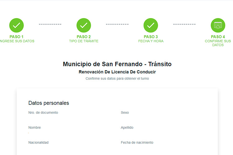 - Paso 1: Ingresar a www1.diphot.com.ar/san-fernando-transito/ y completar los datos básicos para recibir en su correo electrónico (e-mail) con el link para pedir el turno.