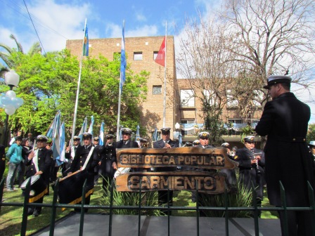 Emocionada, la presidenta de la Biblioteca Popular Sarmiento, Cristina Rodelli, sostuvo: "Es un gran emoción transitar este aniversario como presidente, pero hay una gran equipo de trabajo que acompaña. La biblioteca hoy está muy agiornada, se convirtió en un centro cultural y no es sólo libros. En ella funcionan muchas actividades, talleres y cursos, además hay conexión wifi a internet, que permiten trabajar de acuerdo a las nuevas tecnologías". Estuvieron también presentes durante el evento: los concejales Rodrigo Molinos, Sandra Rossi; Sonia Gatarri, Daniel Macri; Verónica Caamaño, Pedro Segundo Cernadas, Guillermo Edward, Ana Fernández Costa; secretarios municipales; delegados; consejeros escolares; demás autoridades del municipio; la inspectora jefa regional, Adriana Frega; la directora de la Biblioteca Sarmiento, Mirta Frieiro; miembros de la comisión directiva de la Biblioteca Sarmiento; socios; representantes de entidades públicas y privadas; directores de museos; miembros de entidades intermedias; ex combatientes; docentes y alumnos de instituciones educativas del distrito; vecinos; entre otros.
