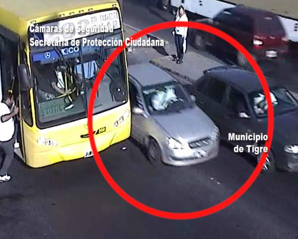 El sistema de monitoreo del Centro de Operaciones Tigre se puso en acción y ubicó al sospechoso a través de las cámaras de seguridad repartidas en el distrito. Se lo vio descender ofuscado de su automóvil y mirar el tráfico porque estaba detenido. Luego, siguió su marcha a alta velocidad rozando otros rodados.