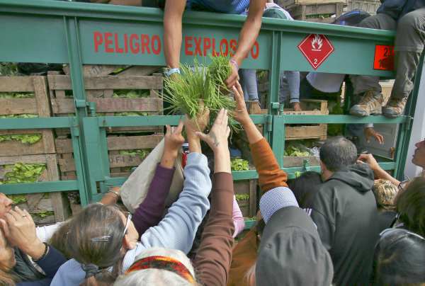 La última protesta con esta modalidad había sido el 23 de diciembre pasado cuando pequeños productores hortícolas protagonizaron un “verdurazo” en el porteño barrio de Constitución al regalar 15 mil kilos de hortalizas en la esquina de Brasil y Hornos.