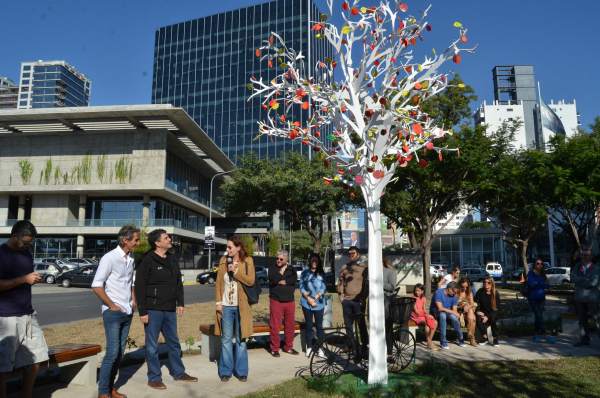 “Es un programa que busca transformar nuestro espacio público en una especie de museo al aire libre, y agregarle sensaciones y experiencias a aquellos que pasean y disfrutan”, dijo el jefe comunal. A esto añadió: “Es una obra de metal, pero con mucho color y que, a pesar de lo pesado del material, se mueve con la brisa; las hojas de los árboles se agitan como si fueran naturales”.