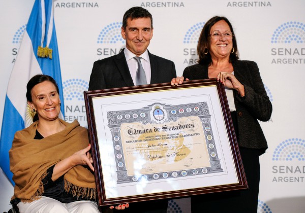 La distinción recibida por Bocca fue promovida por la senadora Marta Varela (PRO) y asistió a la ceremonia la presidenta del Senado, Gabriela Michetti.