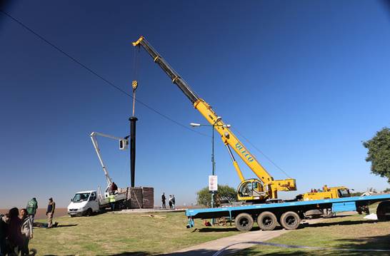 “Es una alegría enorme poder realizar esta escultura en un lugar tan importante de la ciudad. El cincel es un elemento de bronce fundido de 3 mil kilogramos y ocho metros de altura que llega a 10 metros en total, ya que está sobre cuatro bloques de granito de sierra chica que pesan 60 mil kilogramos en total”, especificó Gamarra.
