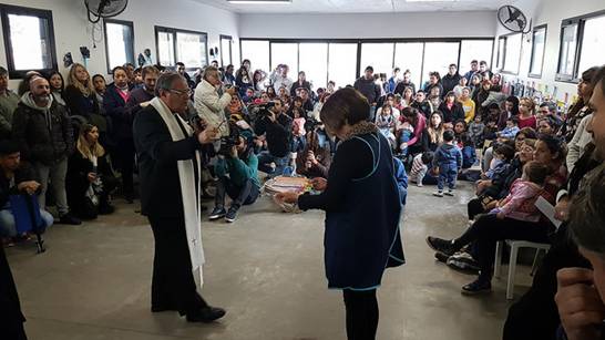 Monseñor Oscar Ojea recordó que en 2012 hubo que cerrar este jardín por falta de fondos. “Hoy se reinaugura con una capacidad para 100 chicos. Hay tantas madres que salen a trabajar que poder dejar a sus hijos en estos lugares es muy importante. Por eso, nos pone felices volver con este servicio”, dijo Ojea.