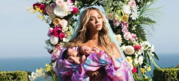 La iconografía -entre el nacimiento de Venus y las representaciones de la Virgen María- retoman la de Instagram en la que Beyoncé, de 35 años, y su marido, el rapero Jay-Z, de 47 años, revelaron al mundo que ella estaba embarazada el 1 de febrero del año pasado.