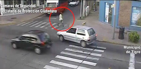 Todo comenzó con un SMS de un vecino de la localidad de Tigre centro al sistema Alerta Tigre Global, en el que informaba de un individuo vestido de buzo amarillo y bermudas recorriendo de forma sospechosa los comercios de Avenida Cazón y calle Chacabuco.