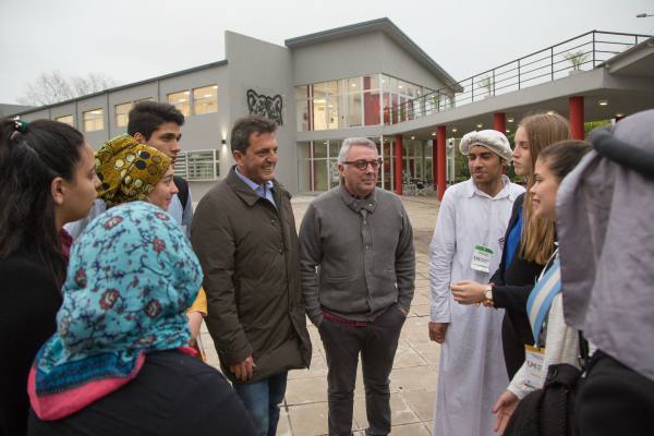 El diputado nacional y candidato a senador por 1País, Sergio Massa, se acercó hoy al Centro Universitario Tigre (CUT) para conversar con un nutrido grupo de estudiantes participantes del programa "Uniendo Metas. Jóvenes para el futuro". En ese marco, acompañado del jefe comunal, Julio Zamora, y la Secretaria de Política Sanitaria y Desarrollo Humano de Tigre, Malena Galmarini, Massa aseguró: "Estamos compartiendo una jornada con más de doscientos chicos de escuelas públicas y privadas de Tigre que hacen un llamado que tiene que escuchar toda la Argentina, que tiene que ver con la paz, con la convivencia, con terminar la lógica de la violencia, con construir un mensaje de ponerle fin a la violencia del Estado, a la violencia política, a la violencia como forma de relacionamiento y empezar a construir la convivencia como forma de vincularnos los argentinos. Ni violencia política ni violencia del Estado, crecer en paz debe ser el camino".