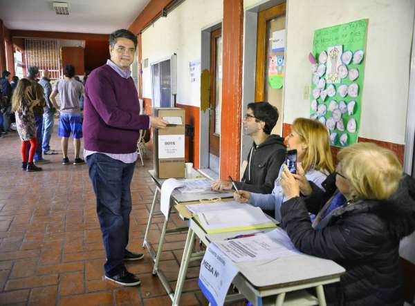 “Espero que hoy sea un día de alegría para nuestro espacio político, sobre todo por María Eugenia [Vidal], que se lo merece; hace un gran trabajo, es una gran mujer, y espero que reciba aún más apoyo que el que tuvimos en las PASO”, señaló el intendente de Vicente López, Jorge Macri, luego de emitir su voto en el Instituto Pedro Poveda, por la mañana.