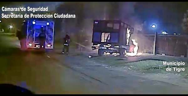 El segundo fue informado por un vecino a través del botón de pánico de la plataforma Alerta Tigre Global. Se trataba de una camioneta Ford F100 incendiándose entre las calles María y Bolivia. Las cámaras de seguridad brindaron asistencia visual, al tiempo que las autoridades llevaban adelante un nuevo operativo.