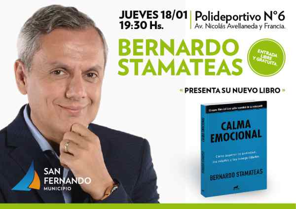 El Municipio de San Fernando invita a los vecinos a participar de la presentación del libro ‘Calma Emocional', de autoría del célebre escritor especializado en auto ayuda, Bernardo Stamateas. El lanzamiento tendrá lugar este jueves 18 de enero, a las 19:30hs, en el Poli N° 6, ubicado en Av. Avellaneda y Francia.