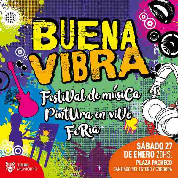 Quedan pocas horas para que arranque en Tigre el Festival "Buena Vibra", que le permitirá al público poder ser parte de un encuentro cultural y artístico. Será este sábado 27 de enero a partir de las 20 hs, en la Plaza Pacheco, Santiago del Estero y Córdoba.