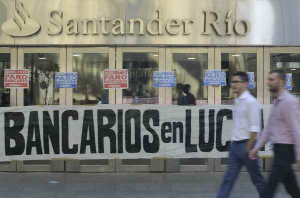 "Hacen listados de los que adhieren al paro, buscan quebrar la medida poniendo cajeros automáticos hasta en los kioscos, pero aquí nos tienen, con un paro de más del 90% de acatamiento y los bancarios en las calles de cada capital de provincia", afirmó.