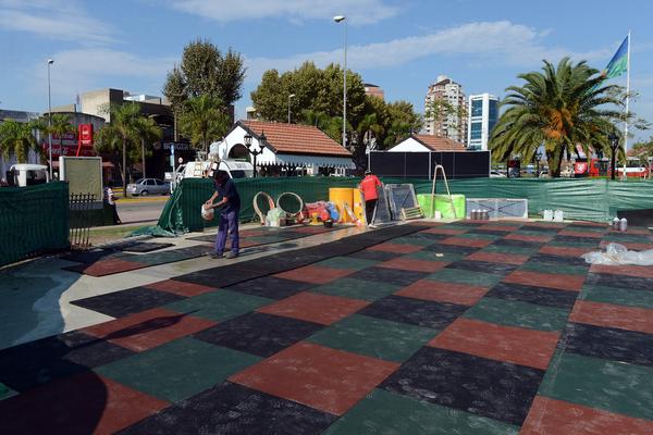 Las obras iniciaron con la remodelación del sector arenero, para la posterior construcción de un contrapiso de hormigón elaborado. Dichas baldosas de goma permiten una mayor protección para los chicos.