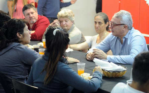 Junto al personal del edificio y los vecinos presentes, Zamora recorrió las refacciones del predio, ubicado en Enciso 425. Luego, compartió un almuerzo con personas que en algún momento se hospedaron en el refugio, quienes relataron sus experiencias de vida.
