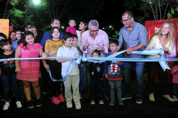 Durante el acto, el intendente recorrió los juegos y descubrió una plaqueta alusiva a la inauguración. Luego, se acercó al merendero Los Patitas para saludar a sus colaboradoras, quienes reciben a niños y niñas de la zona.
