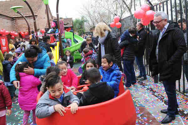 “Aprender Jugando” busca suplantar los antiguos juegos de hierro y madera por modelos nuevos, reforzados y diseñados con colores vivos y estética innovadora. También reemplaza los areneros por pisos de goma antigolpes, antideslizantes y atérmicos.