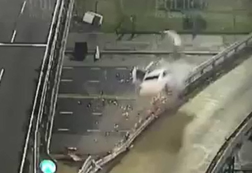 Pese a la impresionante caída, que se pudo observar en un video que circuló en los medios y en las redes sociales, no hubo que lamentar víctimas fatales, y el joven de 25 años que manejaba el vehículo, resultó herido y fue internado.