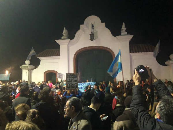 Casi todos con una vela encendida en la mano, los manifestantes entonaron el Himno Nacional y luego canciones en contra del aborto, mientras otros tocaban bombos.