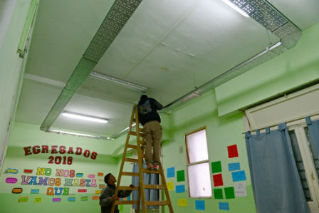 “En estos colegios que tienen aulas muy altas -agregó-, nos permite bajar el artefacto de luz para mejorar la iluminación en el plano de trabajo que es el banco de los chicos. Vamos a poner iluminación led para reducir el consumo. Cuando esté terminada la instalación de toda la nueva parte, se desconecta la entrada del suministro de Edenor y se conecta la fase nueva que reemplaza a la antigua”.