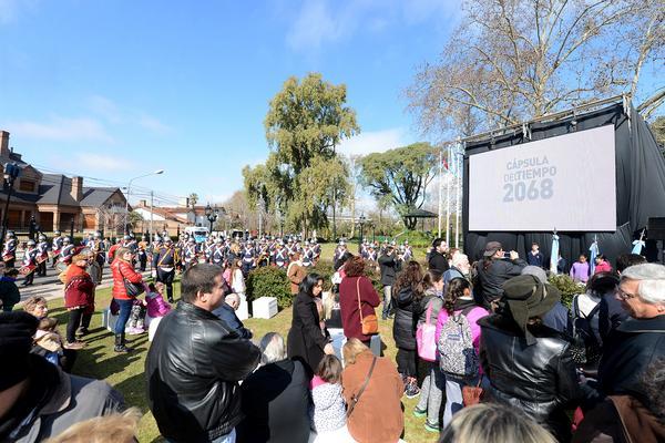 Tras la ceremonia, los presentes se dirigieron hacia la Plaza Daniel María Cazón, ubicada frente al Museo de la Reconquista, para continuar con los festejos. Allí, se transmitió un video alusivo a la fecha y los vecinos pudieron dejar mensajes a las generaciones futuras dentro de una cápsula del tiempo. En 50 años, la comunidad podrá descubrir la misma y encontrarse con notas, textos en papel, fotos y videos en soporte digital.