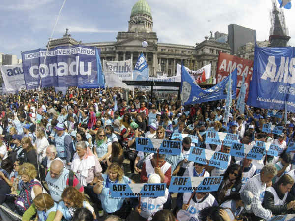 La protesta de CTERA y de los docentes privados de Sadop incluyó también el reclamo por la restitución de la Paritaria Nacional Docente que fue eliminada por decreto durante esta gestión.