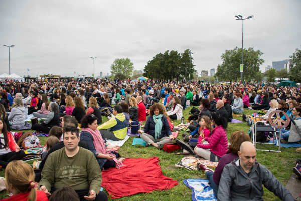 Además, durante la jornada que duró cinco horas, hubo diferentes clases de yoga, presentación de bandas, meditación, arte por la paz y una feria de food trucks de comida natural.
