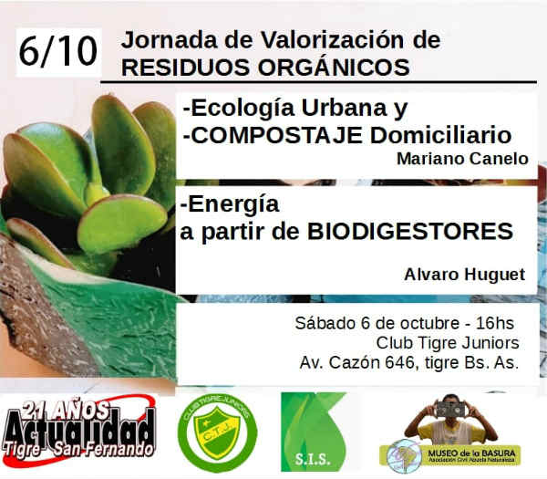 Para saber más sobre compostaje y biodigestores, Álvaro Huguet y Mariano Canedo darán una charla, abierta y gratuita, el sábado 6 de octubre, de 16 a 18hs., en el Club Tigre Juniors (Cazón 646, Tigre centro).