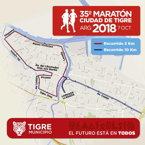 El Municipio de Tigre informa que habrá modificaciones en el tránsito mañana domingo 7 de octubre, entre las 8:30 y 10:30hs, debido a la 35° Maratón Ciudad de Tigre.