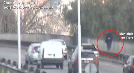 Todo comenzó con la denuncia de la cacera al centro de monitoreo del COT, quien informó que un individuo había intentado robar en la vivienda, ubicada en la calle Colorado en Tigre centro. Inmediatamente, el móvil que patrullaba la zona se acercó al lugar y los agentes comunicaron a la base operativa la vestimenta del sujeto, para comenzar el seguimiento por las cámaras.