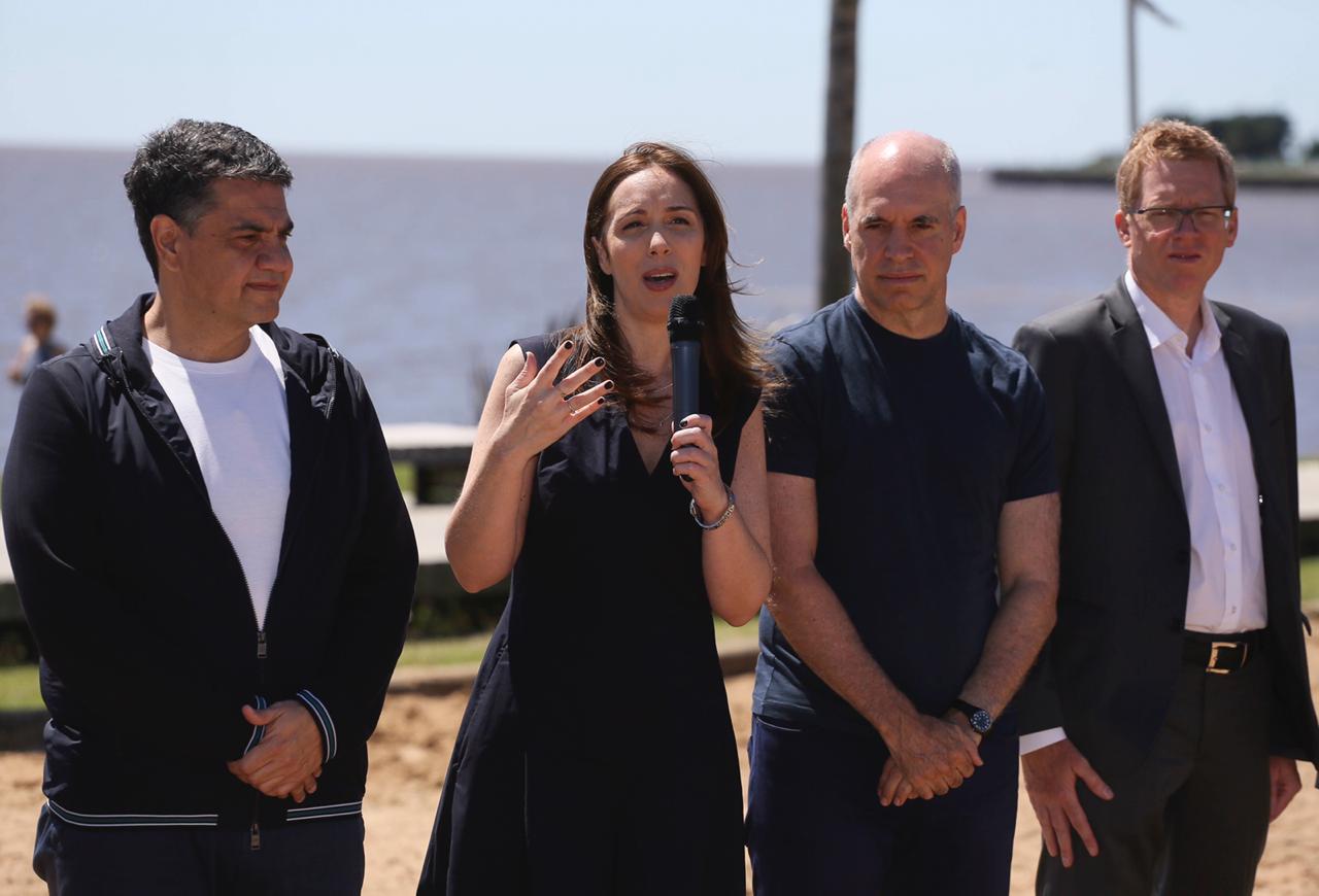 Vidal y Rodríguez Larreta estuvieron acompañados por el vicejefe de gobierno, Diego Santilli, el intendente local, Jorge Macri; los presidentes del Banco Provincia, Juan Curuchet; del Banco Nación, Javier González Fraga; del Banco Ciudad, Javier Eugenio Sebastián Ortiz Batalla; y el secretario general del Gobierno bonaerense, Fabián Perechodnik.