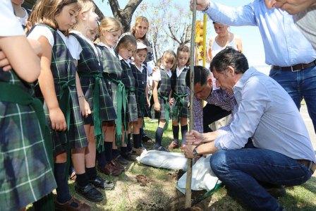 “Nos parece excelente esta propuesta de plantar árboles con los chicos frente a sus colegios. A estas alumnas aún les quedan muchos años de estudio, por lo que podrán ver los árboles crecer, incluso le pondrán nombres”, contó el intendente Posse, luego de realizar esta acción ambiental en Uruguay al 2800.