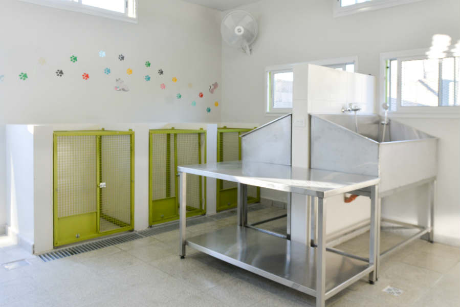 El edificio cuenta con amplios, cómodos y preparados caniles y gateras, que son espacios donde estarán las gatas y cachorros en observación. También se mejoraron las salas del quirófano y el consultorio para brindar una mejor atención. Por último, se amplío y mejora el playón de estacionamiento, con mejores accesos y salidas.