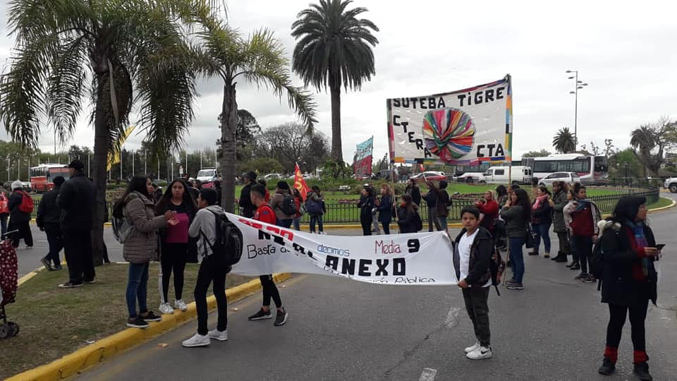 “Por esa razón en este momento, mientras una delegación permanece en la regional, estamos cortando la rotonda de Tigre exigiendo que la Inspectora General, Adriana Frega, vuelva atrás con el anexamiento de la Básica 20, y que los estudiantes puedan completar los 6 años en su escuela, que bajen los sumarios y abran los cursos necesarios”, explica el comunicado.