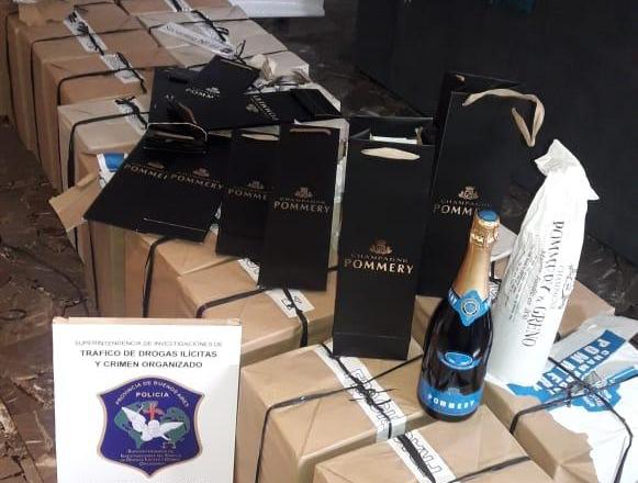 Asimismo, en estos domicilios incautaron 288 botellas y envoltorios con inscripción “POMMERY”, casi 30 mil pesos, 3 mil dólares, más de 3 mil reales y una máquina de contar dinero.