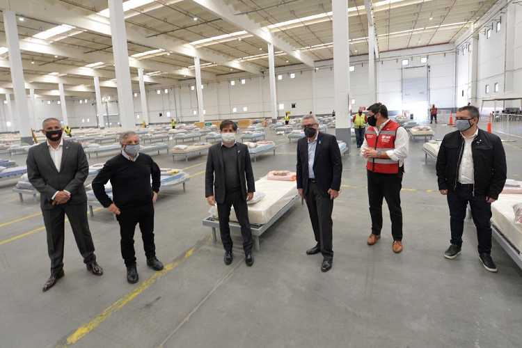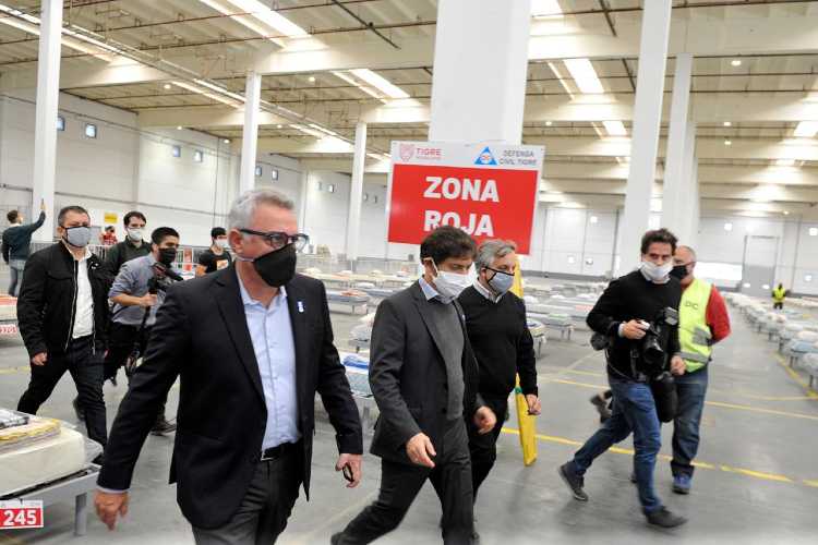 Luego de participar del reinicio de actividades en la planta de Volkswagen junto al presidente Alberto Fernández y el intendente Julio Zamora, el gobernador bonaerense Axel Kicillof continuó con su recorrida por el Municipio de Tigre y visitó junto al jefe comunal el Centro de Aislamiento de Emergencias, un predio de 11.000 mts2, preparado con 500 camas de internación para enfermos de Covid-19 con patologías leves.