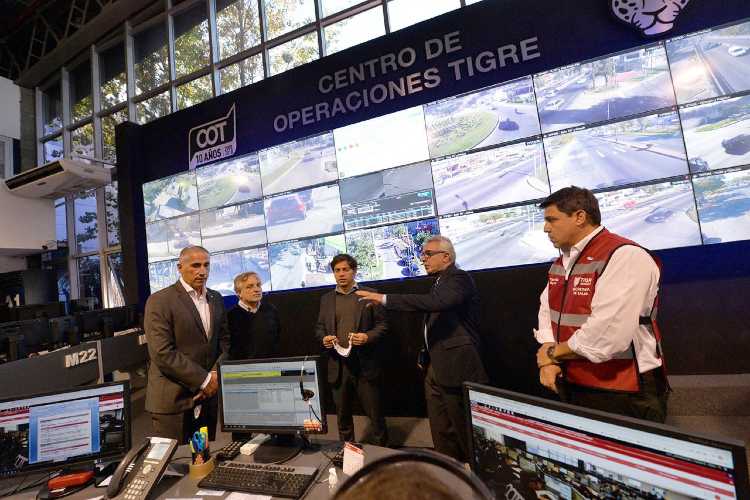 En la recorrida por el Centro de Operaciones Tigre (COT), los funcionarios supervisaron el funcionamiento de las cámaras de seguridad del centro de monitoreo, e interactuaron con agentes que integran el área de Protección Ciudadana, así como de Tránsito, Defensa Civil y Servicio de Emergencias Tigre (SET).