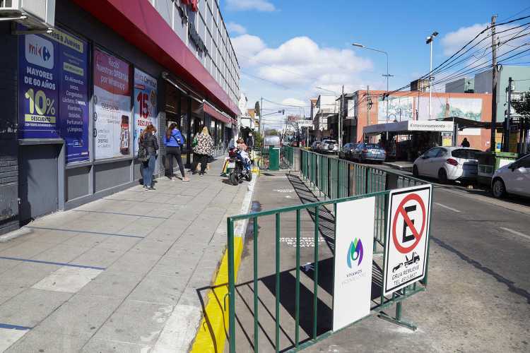 “La delegación municipal detectó que había comercios con una alta demanda de público en veredas muy angostas lo que generaba que entre el peatón común y el cliente a la espera de ser atendido no se podía dar una distancia social óptima. Se definió que en pequeños tramos se elimine el estacionamiento y amplíe en 1.80 metros la vereda”, sostuvo Darío Antiñolo, secretario de Tránsito, Transporte Público y Seguridad Vial.