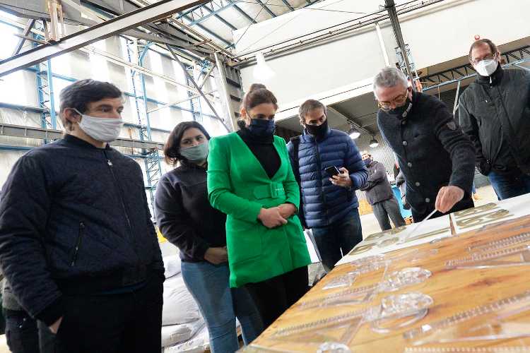 Luego recorrieron las instalaciones del nuevo Polo Productivo Productivo, compuesto por una nave central con oficinas, vestuarios y un comedor. Permitirá tener un abordaje productivo diferenciado en las tres grandes unidades: procesamiento del material reciclable, fabricación de útiles escolares a partir del telgopor reciclado, y mantiene una zona para producir mobiliario urbano hecho con madera plástica reciclada.