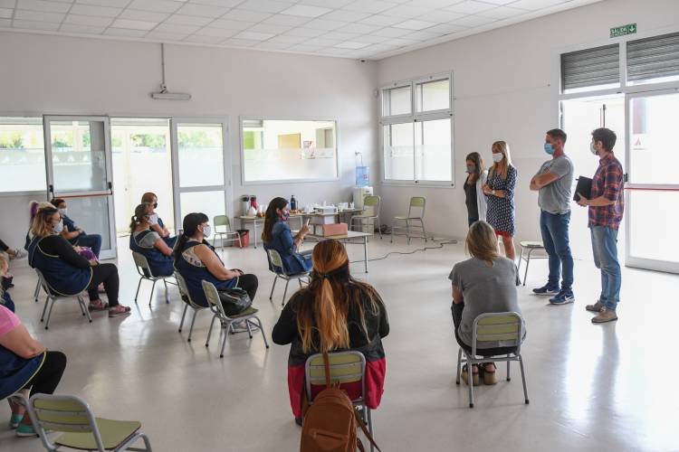 La Subsecretaria de Educación, Mariana Miola, supervisó la primera capacitación en el Jardín Maternal Barrios Unidos y explicó: “Hoy brindamos una charla de sanitización al personal auxiliar y docente de nuestras instituciones municipales de forma presencial y virtual. Es importante que sepan cómo se desinfecta correctamente y todo el protocolo que se exige en este momento que estamos viviendo. El objetivo es cuidar al personal, prepararnos para el momento de las aperturas y lo que será el encuentro con los niños”.