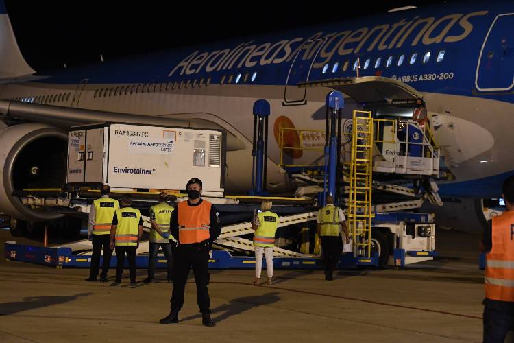 El vuelo fue recibido por el jefe de Gabinete, Santiago Cafiero; la ministra de Salud, Carla Vizzotti, el canciller Felipe Solá y el embajador chino en el país, Zou Xiaoli.