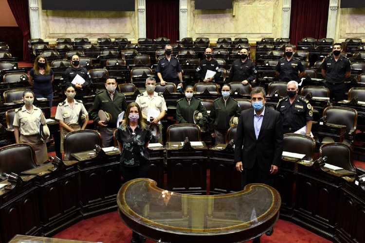 En el Salón de Honor de la Cámara baja, Sergio Massa recibió junto con la ministra Sabina Frederic a representantes de las fuerzas de Seguridad, para informar los beneficios que también producirá en este sector la iniciativa oficialista para modificar el Impuesto a las Ganancias.